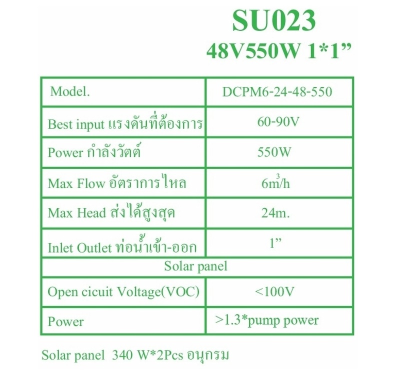 ชุดปั๊มน้ำ 48V550W 1″ ชุดคอนโทรล+แผง340WMono Half Cut *2แผง