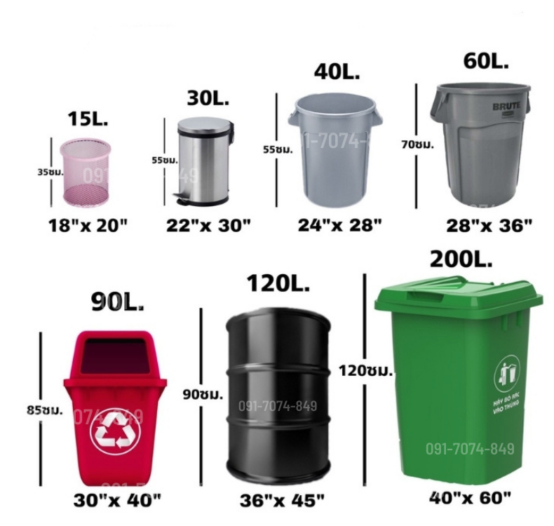 มี 7 ขนาดให้เลือกใช้ได้ตามถังขยะของลูกค้า ขนาดหน่วยเป็น ( นิ้ว )