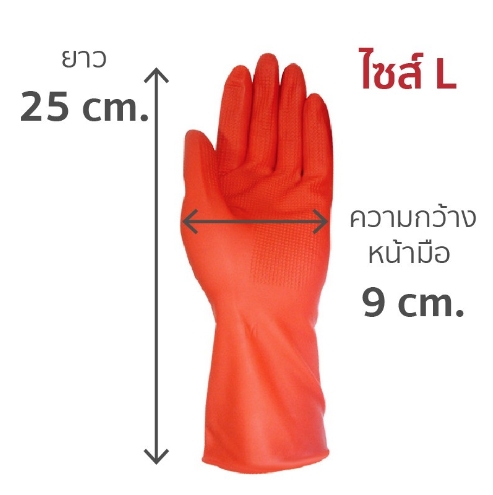 -ไซส์ L สีแดง ข้อสั้น ความกว้างมือ 9 cm. ความยาว 25 cm.