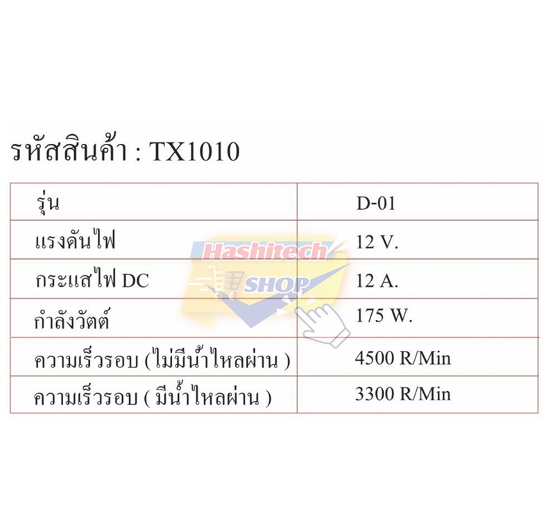 Power (กำลังไฟฟ้า) : 370วัตต์ (0.5แรงม้า)