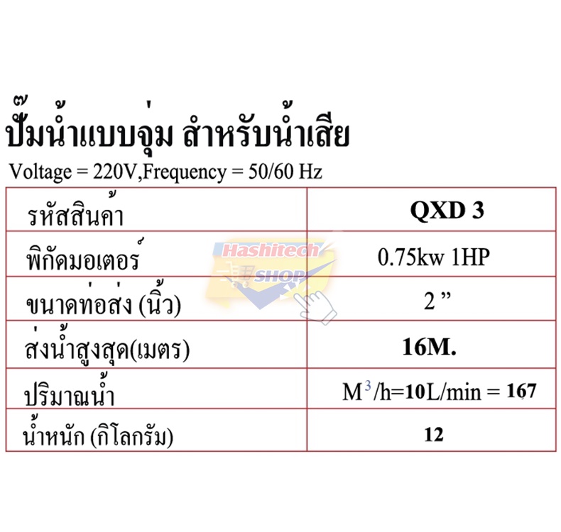 – พิกัดมอเตอร์ : 0.75KW 1HP