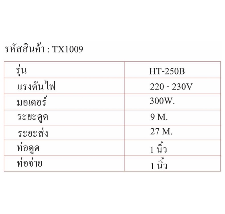 – ไฟ 220V ขนาด 0.5 แรง 750W